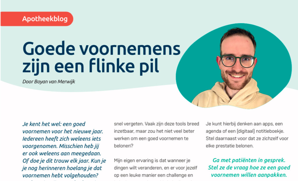 Per 1 januari 2025 ben ik columnist voor het vakblad UA (Uitsluitend Apothekersassistenten). Ik vind het een leuke uitdaging om voor mijn vakgebied (de apotheekwereld) een column te schrijven voor alle collega’s in de apotheek.
